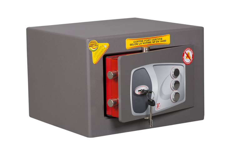 • Double verrouillage : serrure à clé (2 clés fournies) et combinaison mécanique à 3 boutons