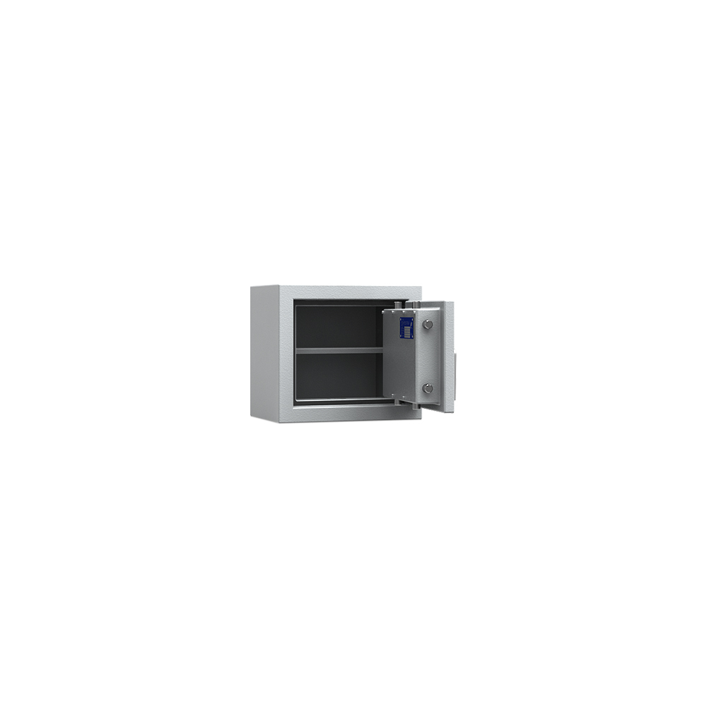 Cette gamme de coffres-forts propose une protection incendie de 30 minutes pour documents papier, conforme à la norme DIN 4102, assurant la préservation des dossiers essentiels en cas de sinistre. Sa structure robuste et son verrouillage par serrure à clé offrent une défense fiable et durable.
