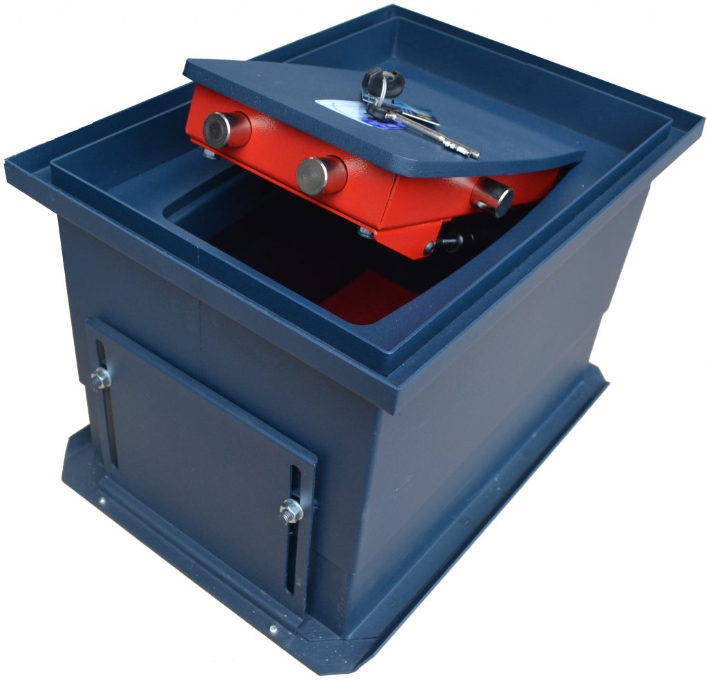 Le coffre-fort GF est spécialement conçu pour être dissimulé dans le sol, offrant une sécurité discrète et extrêmement robuste. Grâce à sa face et à sa porte en acier massif de 10 mm, il résiste efficacement aux tentatives d’effraction et aux attaques mécaniques.