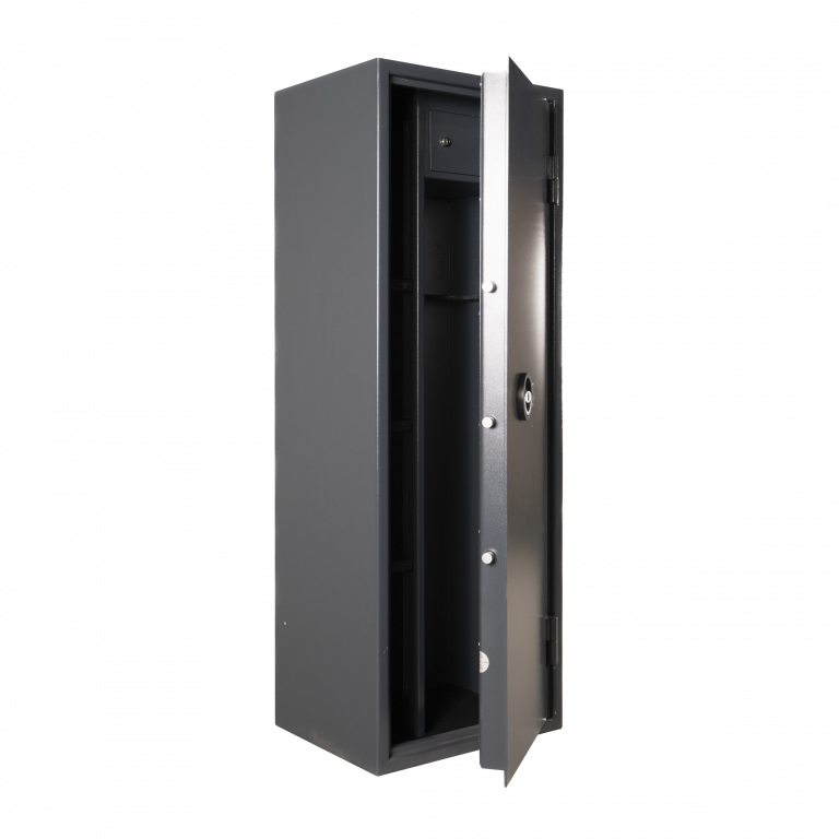 Cette gamme de coffres-forts pour armes est équipée d’une serrure à clé, garantissant un verrouillage simple et efficace. Selon les modèles, l’aménagement intérieur permet le rangement de plusieurs armes longues, avec compartiment séparé, étagères latérales ou espace vide modulable, facilitant une organisation adaptée aux besoins spécifiques de l’utilisateur.